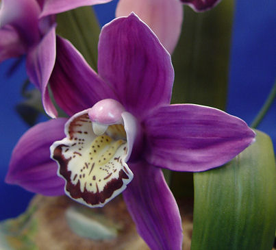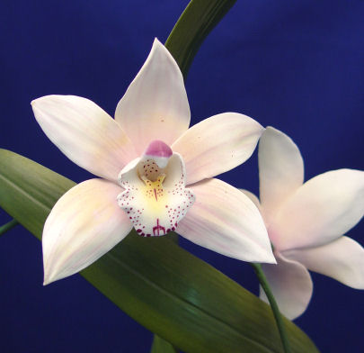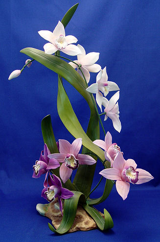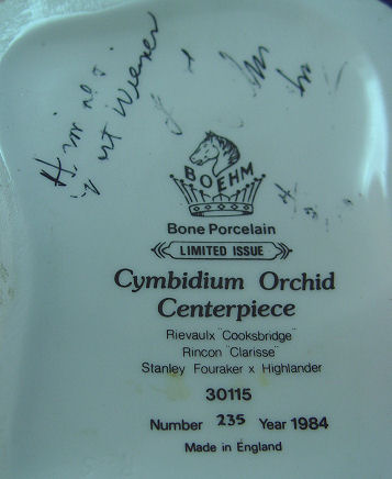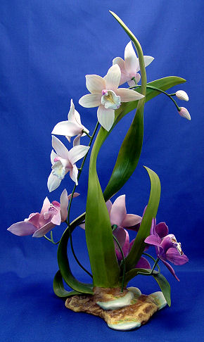BOEHM PORCELAIN CYMBIDIUM ORCHID CENTERPIECE: Magnificent porcelain model of the Cymbidium orchid. Limited issue, this is number 235 produced in the year 1984. Nine full bloom orchids, approx. 19''h.