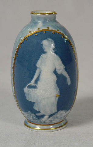 FRENCH PORCELAIN PAT-SUR-PAT VASE: Gold enhanced, 5 1/2''. Porcelain de Paris.