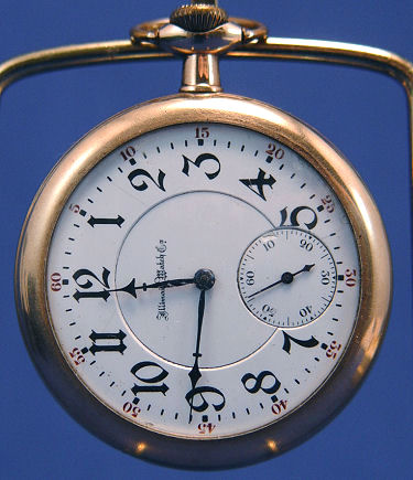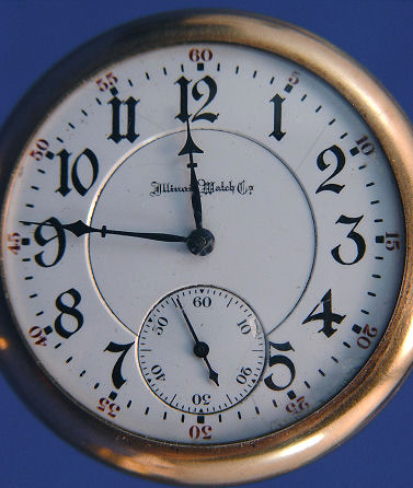 ILLINOIS WATCH CO. A LINCOLN POCKET WATCH: Open face gold filled screw back case by C.W.C.Co., serial #2495869. Works 18 size, full plate, #2187956, 21 jewels, currently keeping time, can't get stem to move hands, small chip to dial at sweep, slight scratching to crystal.