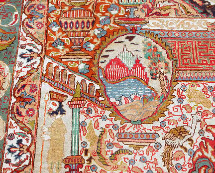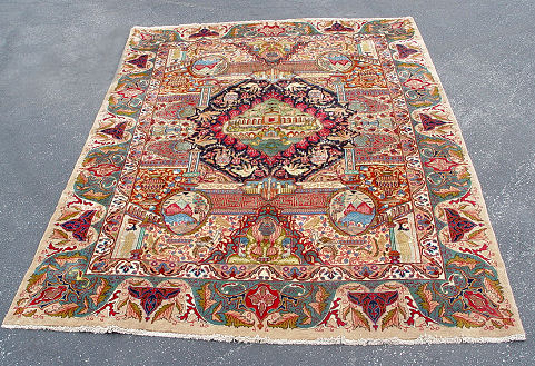 HAND TIED PERSIAN KOSHMAR PICTORAL CARPET: Approx. 8'4'' x 11'5''
