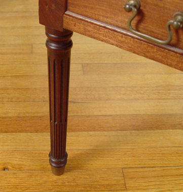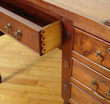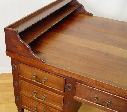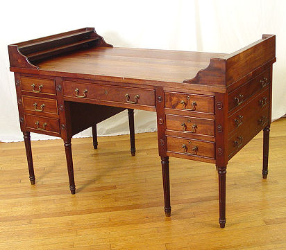 MAHOGANY GEORGE WASHINGTON DESK: Double partners knee hole desk with 7 drawers on each side. Faux drawers on the sides, reeded legs. 35''h. x 29 1/2'' x 53''.