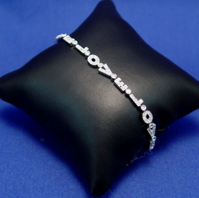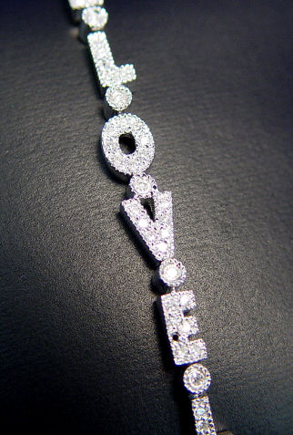 'LOVE'' BRACELET: 14k white gold bracelet with alphabetical links encrusted with tiny diamonds, 7'', 9 grams. Est. $500/700**