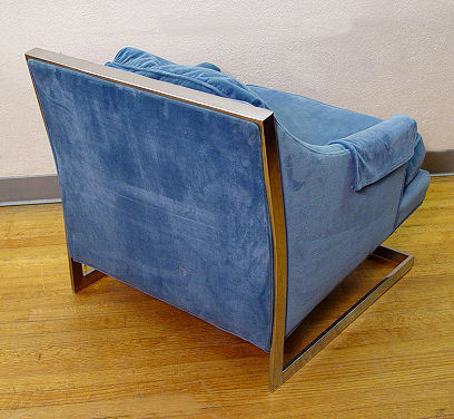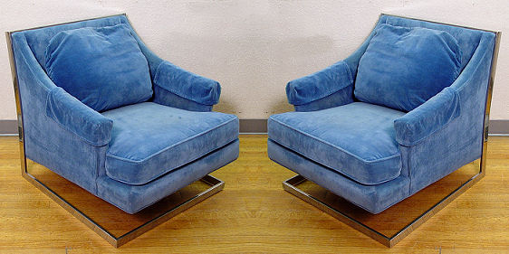 PAIR OF 1960'S CHROME FRAME CHAIRS: Cushy blue velvet upholstery. 28''h. x 27 1/2'' x 31''.