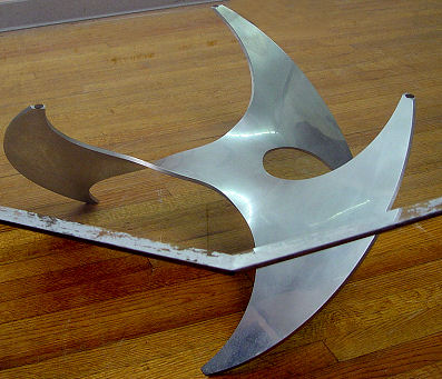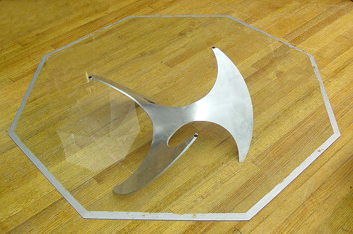 ABSTRACT 1960's DESIGNER ALUMINUM BASE COFFEE TABLE: Octagonal glass top, 46'' dia.