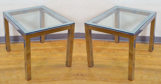 PAIR OF 1960'S CHROME AND GLASS SIDE TABLES: 21''H. X 22''