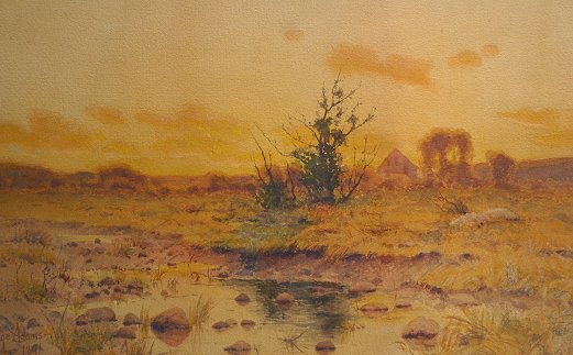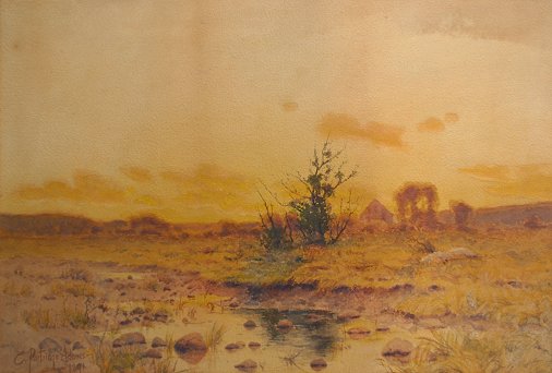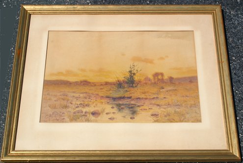 ADAMS, Charles Partridge, (American, 1858-1942): Western prarie landscape, W/C, 15 1/4'' x 22 1/2'', signed lower left and dated 1891, encased in worn gold frame, 21 1/2'' x 31''. Condition - Staining from backing throughout. Est. $1200/1800**