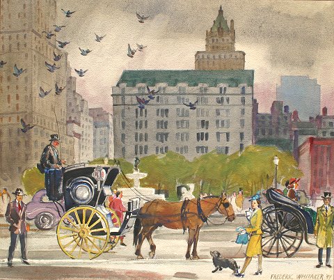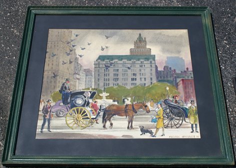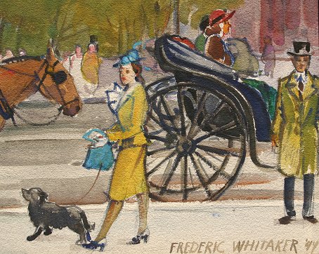 WHITAKER, Frederic, (American, 1891-1980): Central Park, New York City, W/C, 21'' x 25'' sight size, signed lower right and dated '44, encased in overpainted abused frame, 30'' x 33 1/2''. Est. $800/1200**