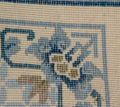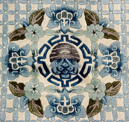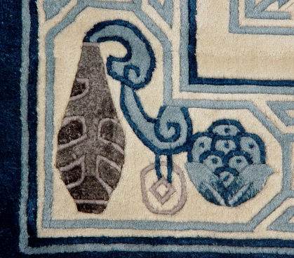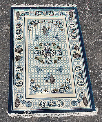CHINESE BLUE SCULPTED SILK RUG: Approx. 4' x 2'3'', excluding the fringe. Never placed on the floor.
