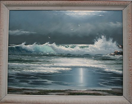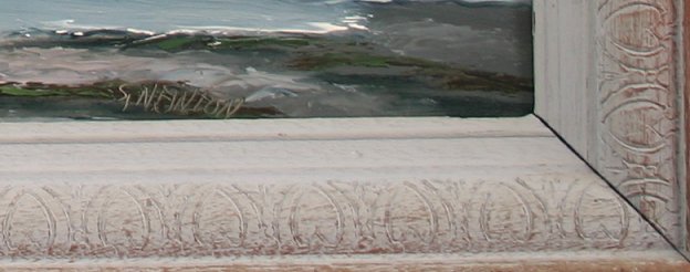 NEWTON, Sam, (American, 20th C): Florida coastal scene, O/B, 21 X 27 1/2'', signed lower right, worn white washed frame, 25'' x 32''. Newton is a member of the famous Florida Highwaymen group.