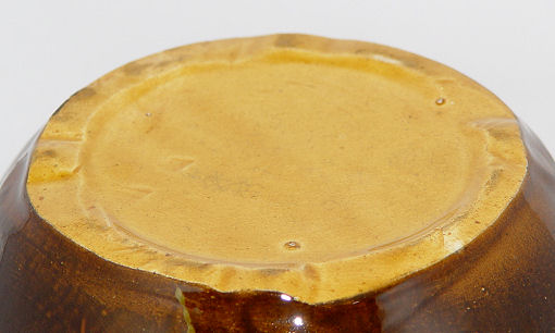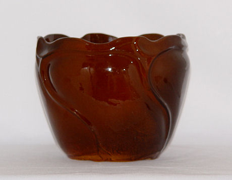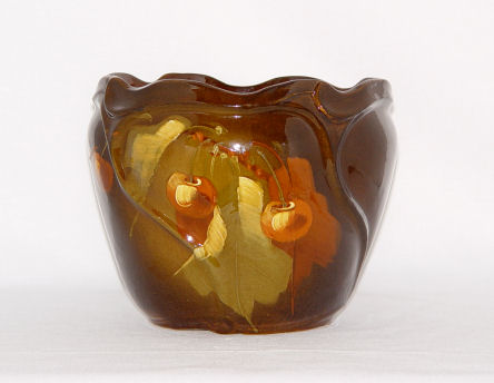 WELLER ''AURELIEN'' CHERRY DECORATED ART POTTERY JARDINIERE: 8''h, 9 1/2'' dia. Swirled body with cherry decoration.