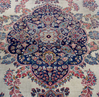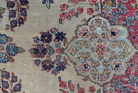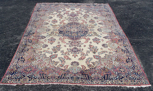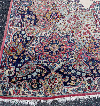 SEMI ANTIQUE PERSIAN KERMAN CARPET: Approx. 15'8'' x 9'10'', please note wear to edges and center section.