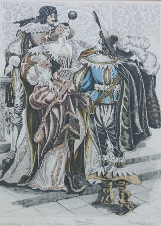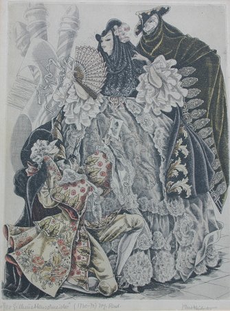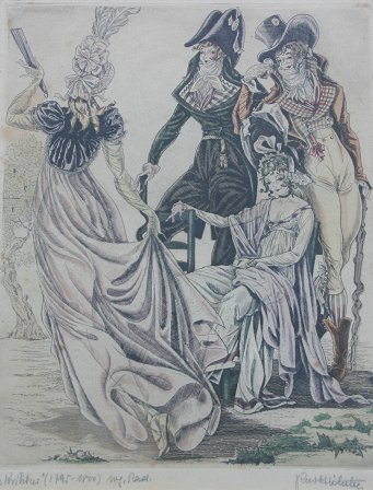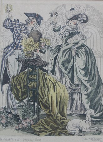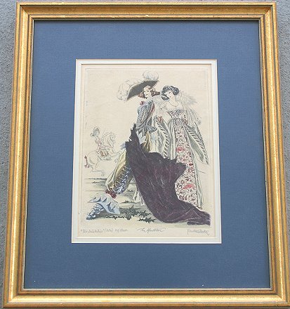SET OF SIX EARLY 20TH CENTURY EUROPEAN COURTING ETCHINGS: Illegibly signed lower right, every piece is titled in pencil and signed in pencil, sight size ''10 1/4'' x 7 3/4'', encased in matching mat and frames, 17 3/4'' x 15 1/4''. Condition - Minor browning.
