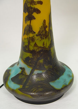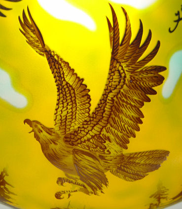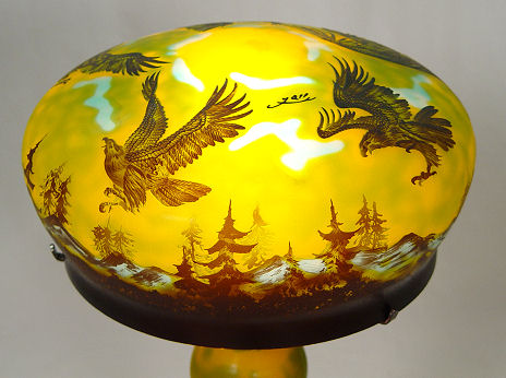 GALLE' STYLE CAMEO GLASS LAMP: Cut in a landscape eagle motif. Overall 33'' h., 12 1/2'' dia. shade.
