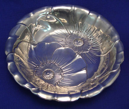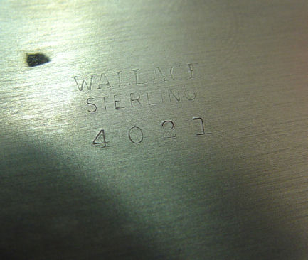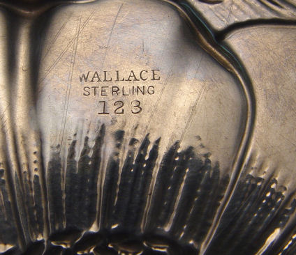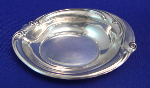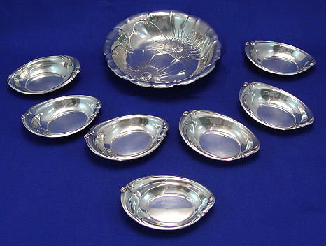 9 PC LOT OF WALLACE STERLING: To include, 8 nut small nut dishes with scrolling edges, marked Wallace Sterling 4021, 3 3/4'' x 2 1/2'' x approx. 3/4''h.; and a small floral motif bowl with fluted edge, marked Wallace Sterling 123, 6''dia. Sold as a lot.