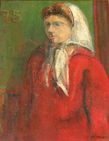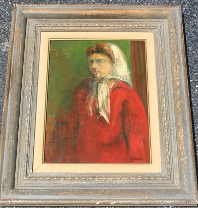 CHERNEY, Marvin, (American, 1926-1966): ''The Red Coat'', O/C, 16'' x 12'', signed lower right, signed and titled on the stretcher verso, encased in a worn wood frame, 24 1/2'' x 20 3/4''.