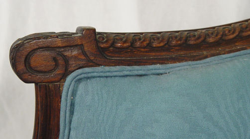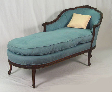 CARVED CHAISE LOUNGE: Early 20th C. Carved mahogany framed, single long cushion. 33''h. x 67'' x 29''. Please call for condition.