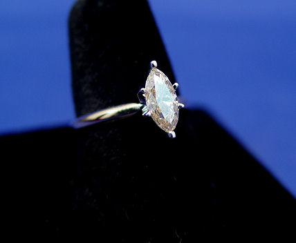 1.13CT MARQUISE DIAMOND RING: Cognac colored diamond, measuring approx. 9 x 4.5 x 3.5mm, prong set in white gold on a yellow gold band, marked 14k SMS, size 7, 2.3 grams.