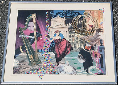 PRICE, Hartley, (American, 20th C.): ''Commedia Dell'Arte'', Collage, signed lower left and dated '84, total size with frame 15 1/4'' x 18''.