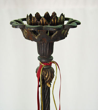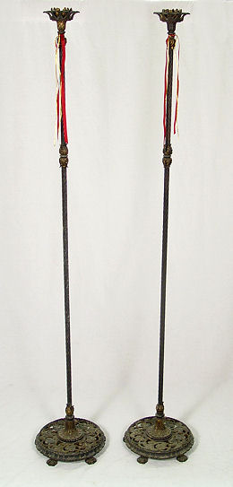 PAIR OF 1920'S CAST IRON CANDLE FLOOR TORCHIERES: Original partially gilded finish. 58''h.