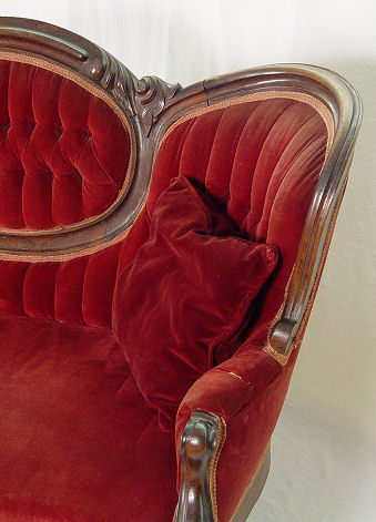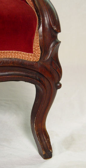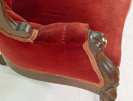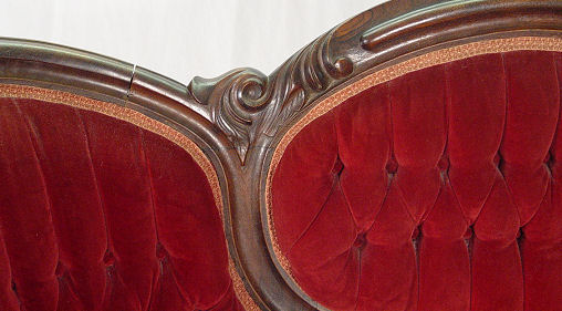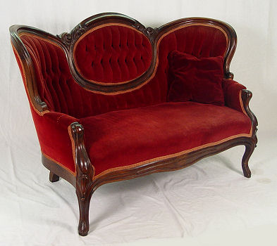 ROCOCCO REVIVAL VICTORIAN SETTEE: Molded walnut frame, medallion center, button and tufted back. 34''h. x 56''l., x 23'' deep.