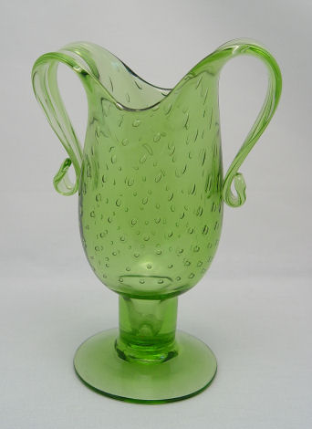 BULLICANTE ART GLASS VASE attrib. TO BARBINI: Green glass with pulled arms, 9 1/2''h.