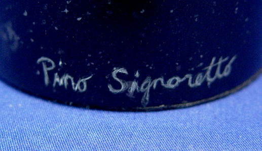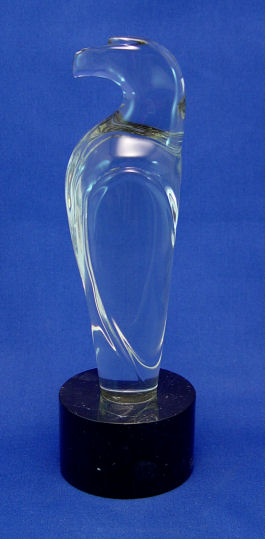 CRYSTAL FALCON SIGNED PINO SIGNORETTO: Etched signature on the black glass base. 9 1/2''h. Base is 3''dia.