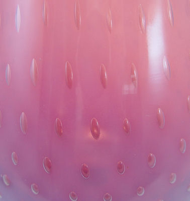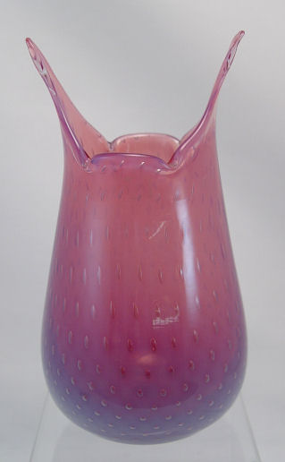BULLICANTE MURANO ART GLASS VASE: Cranberry with a touch of iridescent, paper label, 9''h.