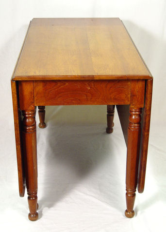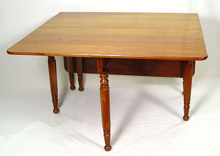 CHERRY DROP LEAF DINING TABLE: Swing legs with attractive turning, 65'' x 46'' x 28 1/2''