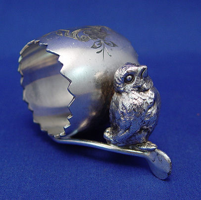 VICTORIAN FIGURAL NAPKIN RING BY BARBOUR SILVER CO: Baby chick and wishbone, signed. Approx.2'' h.