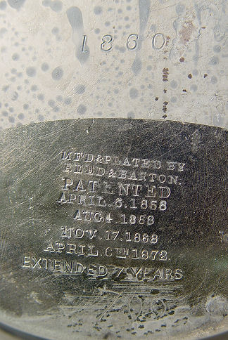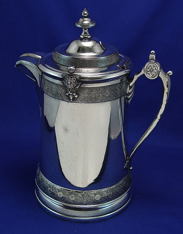 REED & BARTON VICTORIAN SILVERPLATED COLD WATER PITCHER: With porcelain liner. One very small dent. 13 1/2''h.