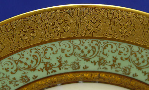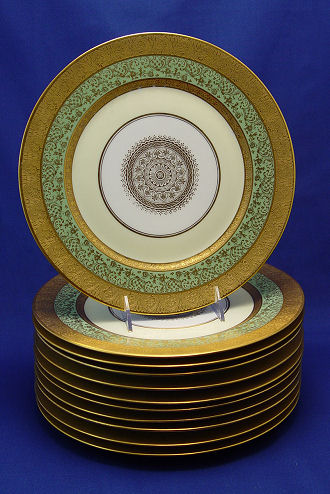 ELEVEN FURSTENRG FINE CHINA SERVICE PLATES: Heavy gold rim border. 11 1/2'' dia.