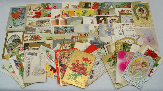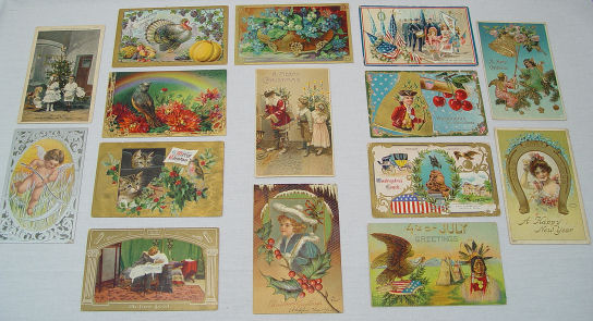 ESTATE FRESH POSTCARDS FROM EARLY 1900'S: Approximate 106 vintage holiday cards. Christmas, New Years, Patriotic, including a transparency card.