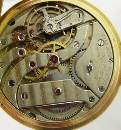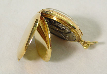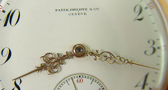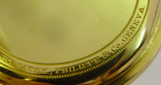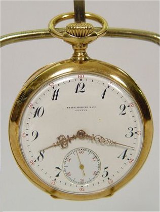 PATEK PHILIPPE 18Kt GOLD POCKET WATCH: Made for Mermod, Jaccard & King Co. St Louis New York, Serial #132681, circa 1906. Yellow gold open face case, with triple hinged case, serial #247986, circa 1925, marked PP.Co 18k, white porcelain dial, black numbers, red second count, gold filigree hands, second sweep above 6 o'clock space.