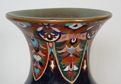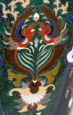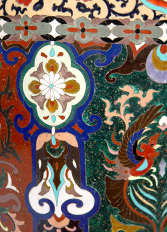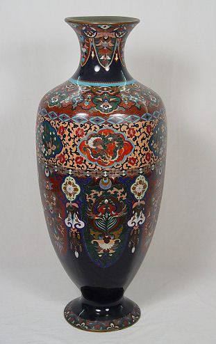 PALATIAL JAPANESE CLOISONNE VASE CA. 1890: 41 1/2'' tall, showing a generous sampling of motifs from dragons, floral, moth, and Phoenix bird.