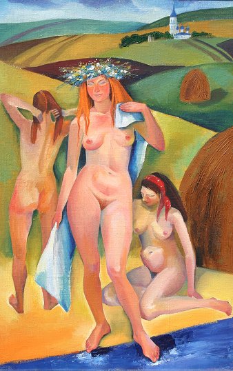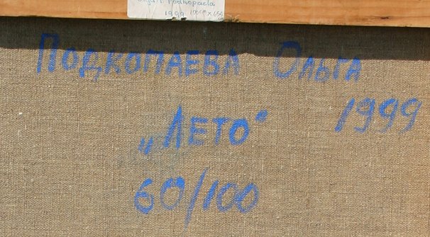 PODKOPAELA, Olga, (Russian,20th C): Titled in Russian verso, O/C, 39 1/2'' x 25 3/4'', signed verso, titled, dated 1999, encased in a contemporary silver gilt frame with wear on the corners, measures 42 1/2'' x 29''.