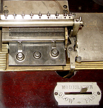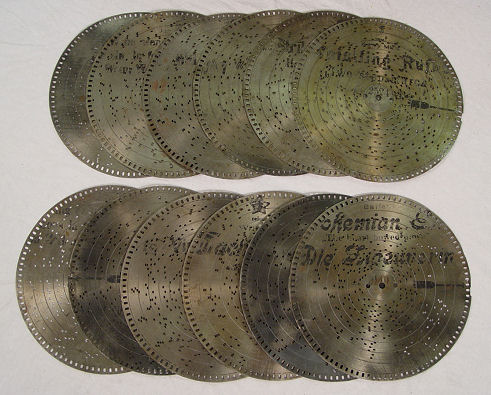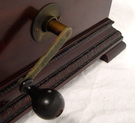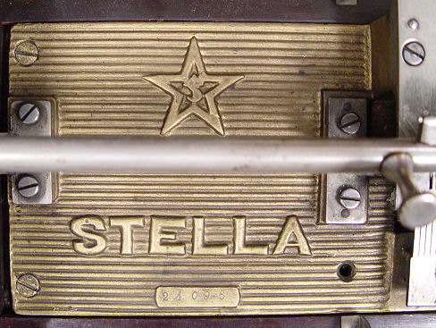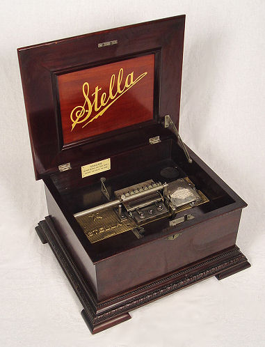 SWISS MERMOD FRE'RES DISC MUSIC BOX KNOWN AS THE ''STELLA'': In fine mahogany table top case. Good working order, exterior crank. The 10 discs included are 9 1/2'' dia. The case is 10 1/2'' h. x 18 1/2'' x 15 1/2''. Est. $2500/4000**