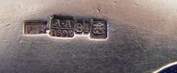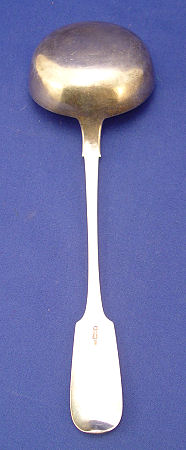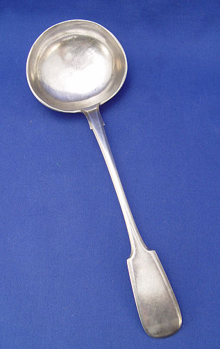 19th C RUSSIAN SILVER LADLE: Hallmarks indicate Pairaksiwen, assayer A A 1892. 11''l, the bowl is 3 1/2''l.