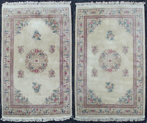 PAIR CHINESE SCULPTED WOOL CARPETS: Approx. 5' x 8', soft pastel coloration.