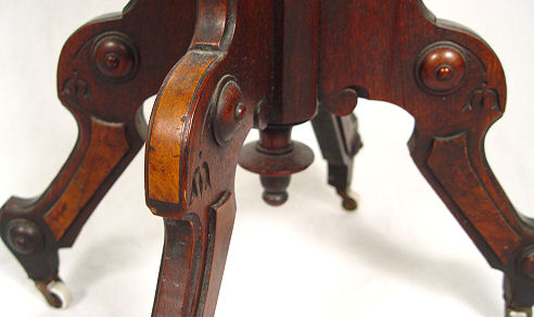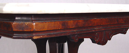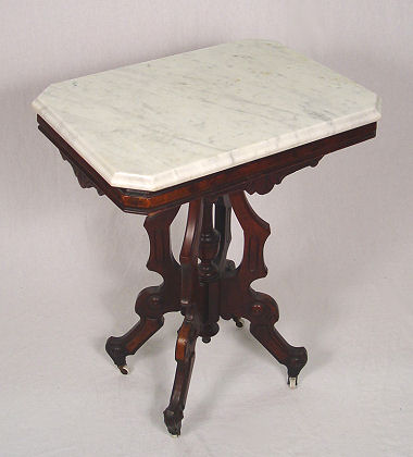 VICTORIAN MARBLE TOP LAMP TABLE: White marble top on an incised walnut base. Shaped supports. 30 1/2''h, x 18'' x 24''.