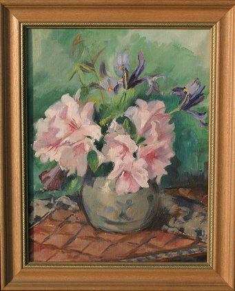 SARGEANT, Geneve Rixford, (American, 1868-1957): Flowers in a vase, O/C, 18'' x 14'', faintly signed lower right, encased in wooden frame, 21 1/2 x 17 1/2''.