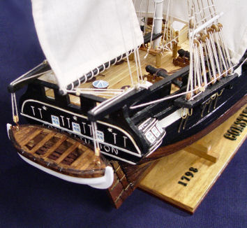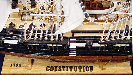 MODEL OF THE TALL SHIP USS CONSTITUTION: Hand crafted by a local retired Navy man. Highly detailed, hand crafted, not from a kit, showing great homage to this famous ship. Wood, copper with other metals, cloth, and string construction. 27 1/2''h. x 37''l.