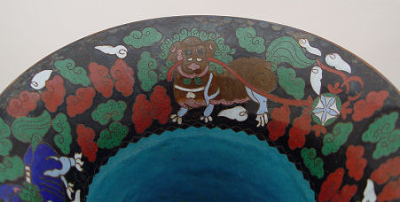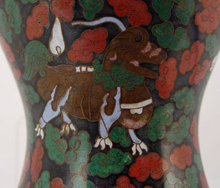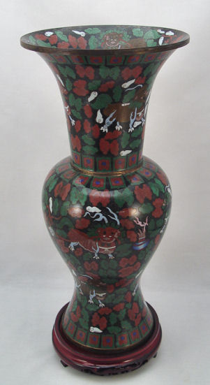 TALL CHINESE CLOISONNE VASE: Foo dog or lion decoration, 18'' h. Sold with the import box.