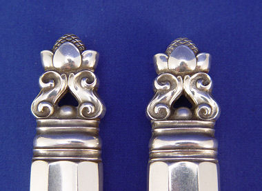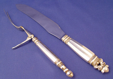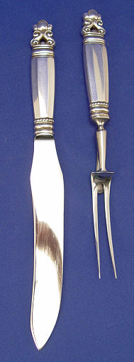 GEORG JENSEN STERLING CARVING SET: Large roast carvers, the knife is 12 1/4''l, the fork 10 1/2''l. Bears the dotted oval mark used since 1945.