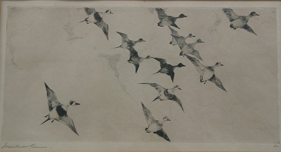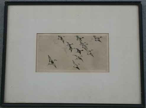 BENSON, Frank Weston, (American, 1862-1951): ''Old Squaws, #2'', Drypoint, sight size 5 1/2'' x 10 1/2'', pencil signed lower left, illegible marking lower right, encased in worn black original frame, 15'' x 20''.