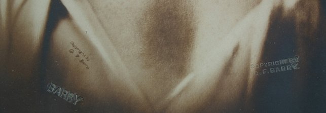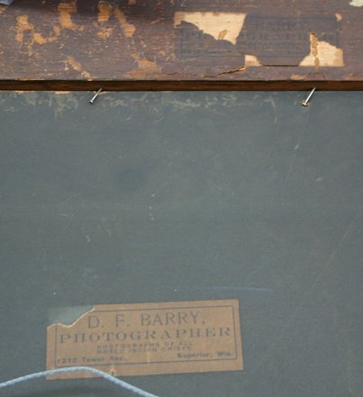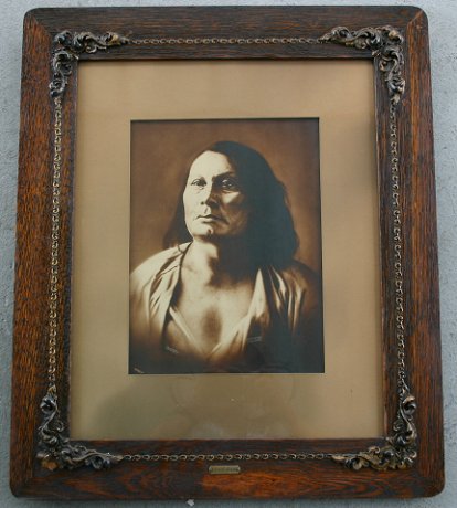 BARRY, David F., (American, 1854-1934): ''Chief Gall'', Collodion Chloride Print, sight size 13'' x 9 3/4'', encased in vintage oak studio frame with applied gesso design, 25 1/4'' x 21 1/2''. Original package bares the D.F. Barry Photographer Gallery Labels both on the frame and the piece verso. This piece is blindstamped twice in the picture, signed in the plate twice and bears the Chief Gall name plate at the bottom.