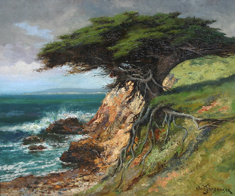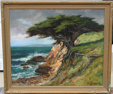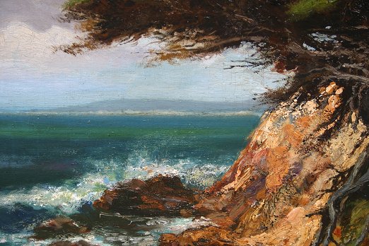 JORGENSEN, Christian August, (American, 1860-1935): ''Point Lobos'', O/C, 23 1/4'' x 27 1/2'', signed lower right, encased in original carved and gilded frame with wear, 27 1/2'' x 31''. This is 1 of 11 paintings descending through the family directly to Jorgensen's great granddaughter, Mary Helen Anderson. Never before offered, fresh from the estate.
