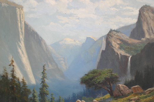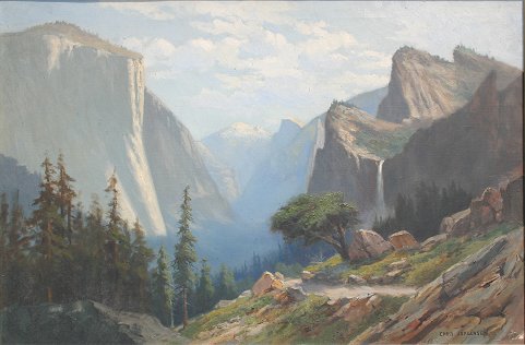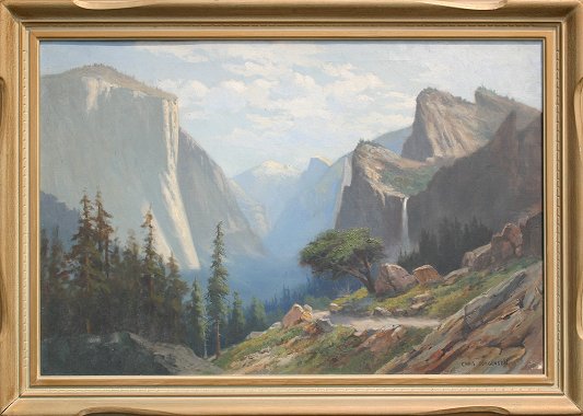 JORGENSEN, Christian August, (American, 1860-1935): Yosemite Valley, O/C, 24'' x 36'', signed lower right, encased in original frame with wear, 29 1/2'' x 41 1/4''. This is 1 of 11 paintings descending through the family directly to Jorgensen's great granddaughter, Mary Helen Anderson. Never before offered, fresh from the estate.