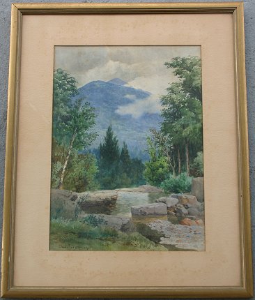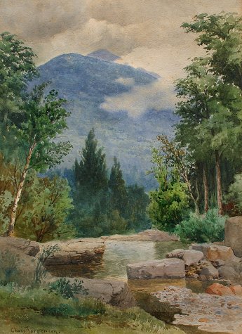 JORGENSEN, Christian August, (American, 1860-1935): ''Kearsage And Bartlett In The Clouds'', W/C, 14 1/4'' x 10 1/4'' sight size, signed lower left, titled under the mat lower right, encased in painted gold frame with wear, 20 1/2'' x 16 1/2''. This is 1 of 11 paintings descending through the family directly to Jorgensen's great granddaughter, Mary Helen Anderson. Never before offered, fresh from the estate.