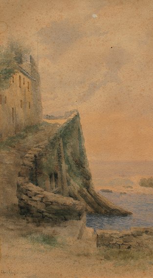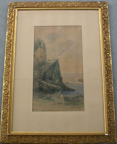 JORGENSEN, Christian August, (American, 1860-1935): Coastal path, W/C, sight size 18 3/4 x 10 1/2'', signed lower right, encased in gilded gesso embossed frame with damage and missing gesso, 31 1/2'' x 23''. This is 1 of 11 paintings descending through the family directly to Jorgensen's great granddaughter, Mary Helen Anderson. Never before offered, fresh from the estate.