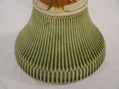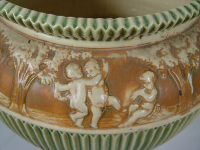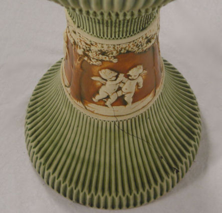 LARGE ROSEVILLE ''DONATELLO'' JARDINIERE & PEDESTAL: Jardiniere is 14'' dia., 11 1/2''h. Pedestal is 22''h. Please call for condition.